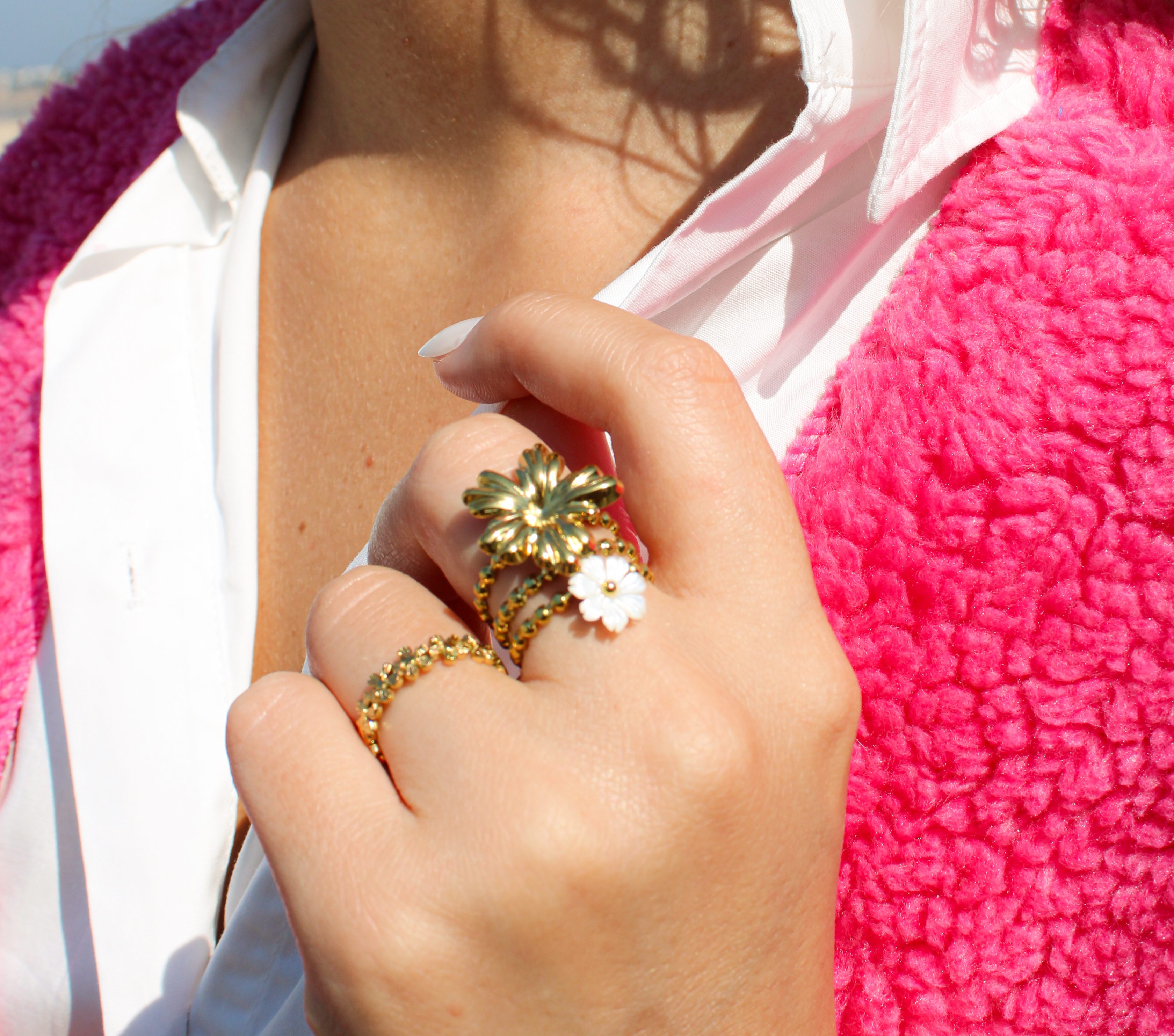 La bague Soléane est ajustable , ce qui permet de l’adapter à plusieurs tailles de doigt pour un confort maximal. Sa conception ouverte la rend facile à ajuster sans nuire à la finesse du design. Cette flexibilité vous permet de la porter à votre convenance, que ce soit en bague principale ou en combinaison avec d’autres bijoux.