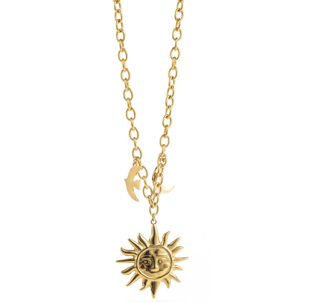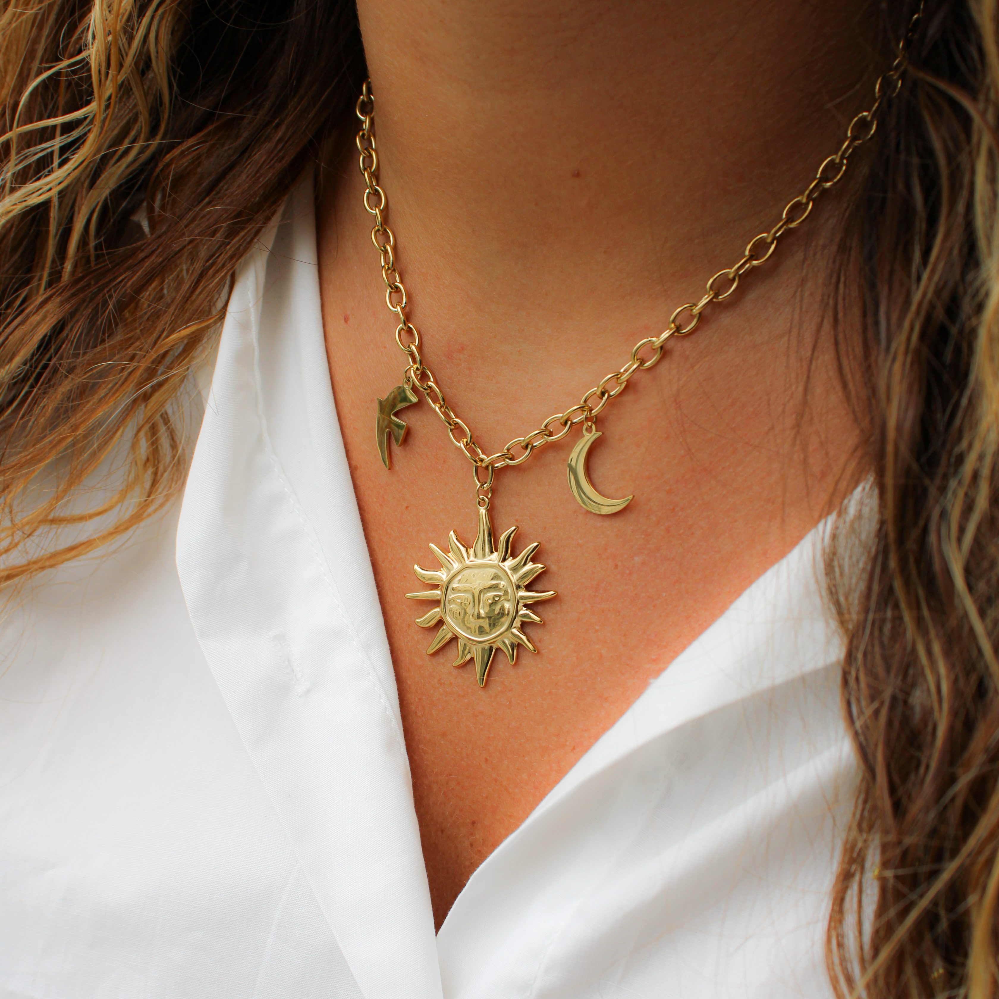 - Type de Design : collier grand soleil et pampilles oiseau et lune